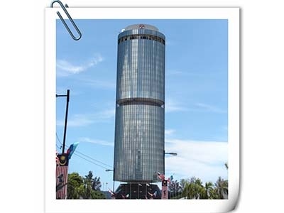 有點像水塔...玻璃面的外牆在陽光底下閃閃發亮...